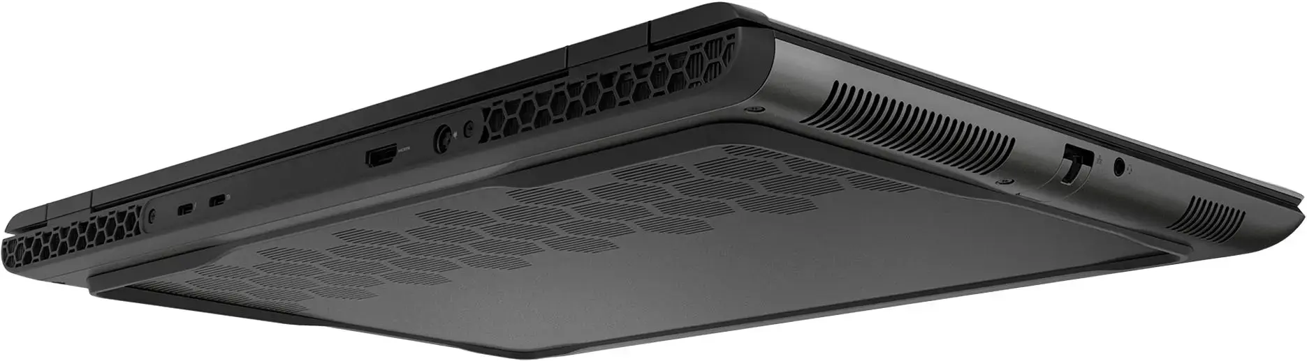 El diseño en color Dark Metallic Moon le otorga una apariencia sofisticada y moderna. La Alienware m16 R2 incorpora un teclado retroiluminado AlienFX RGB por tecla, permitiendo personalización y mejorando la experiencia de uso en entornos con poca luz. En cuanto a conectividad, dispone de múltiples puertos, incluyendo USB 3.2 Gen 2 Tipo-A, USB-C con Thunderbolt 4, HDMI 2.1, y un puerto Ethernet RJ-45, facilitando la conexión de diversos periféricos y garantizando una conectividad de red estable y rápida.
