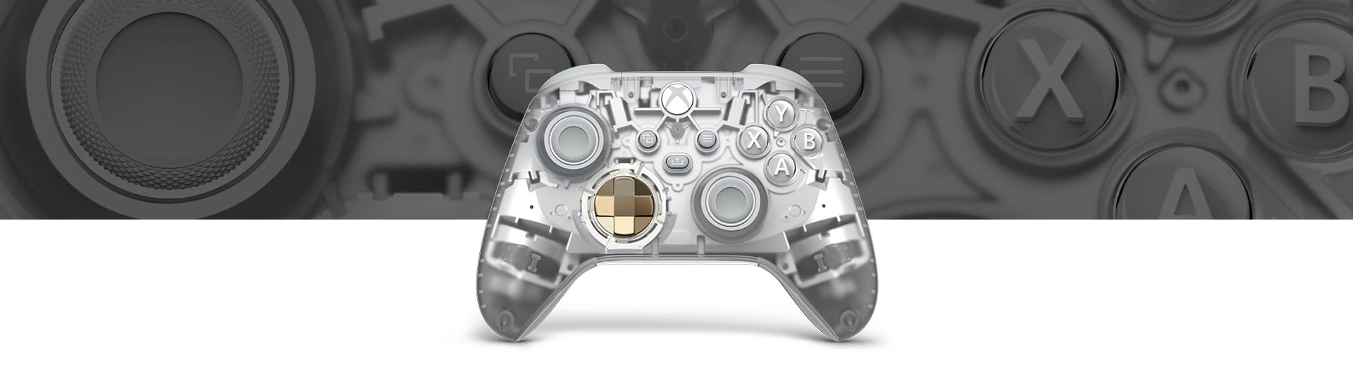 Mantén el objetivo con elegancia con los gatillos metálicos de bronce y un pad direccional que hace juego. Controla la acción con agarres texturizados de color gris ceniza por la parte posterior de la carcasa.