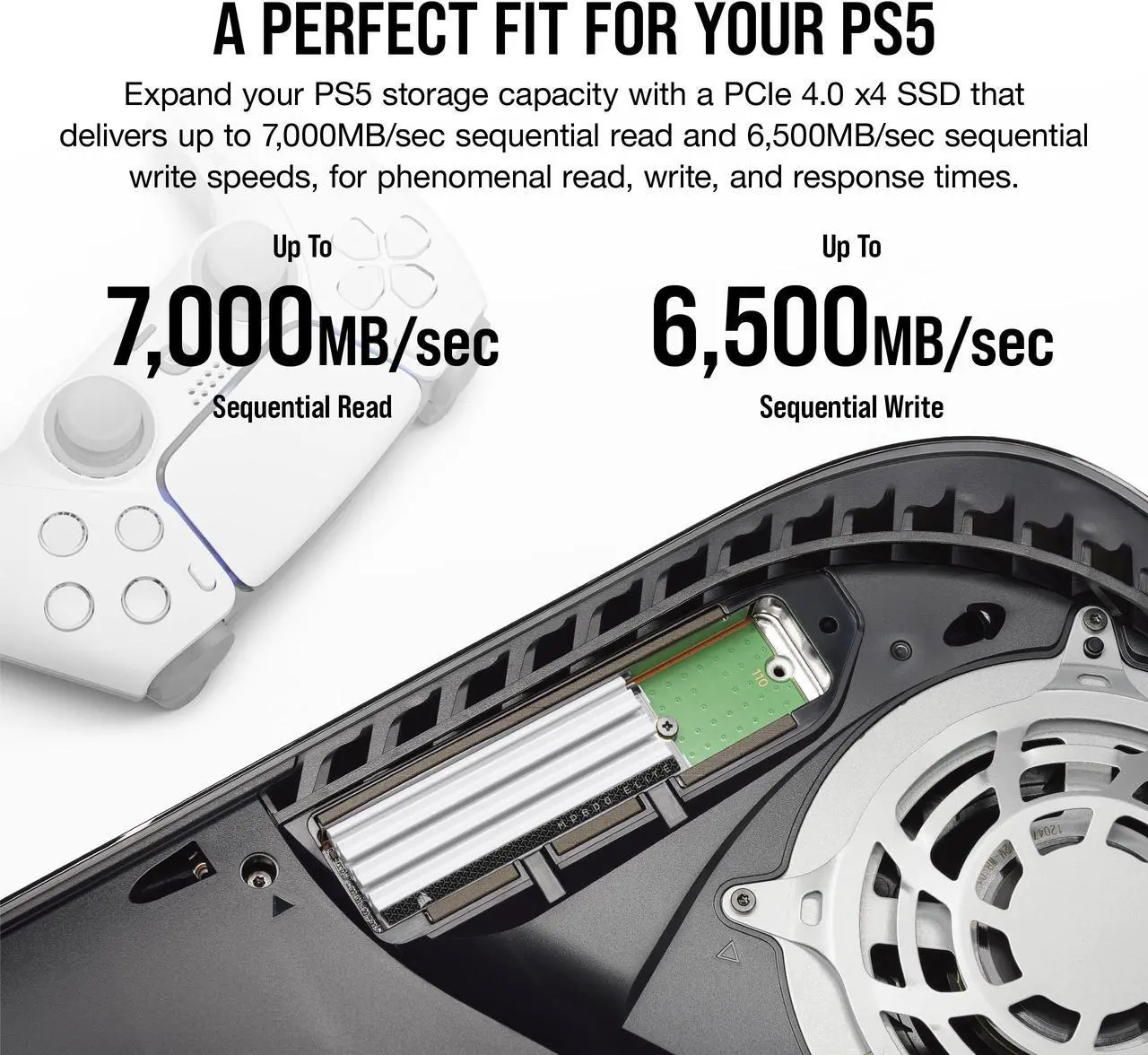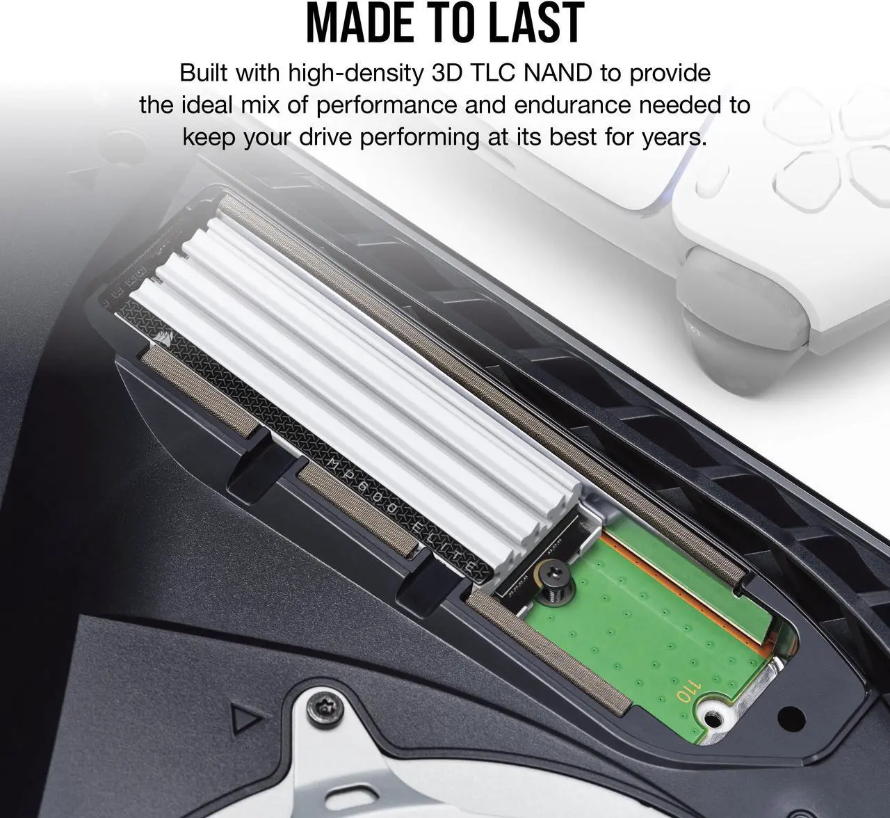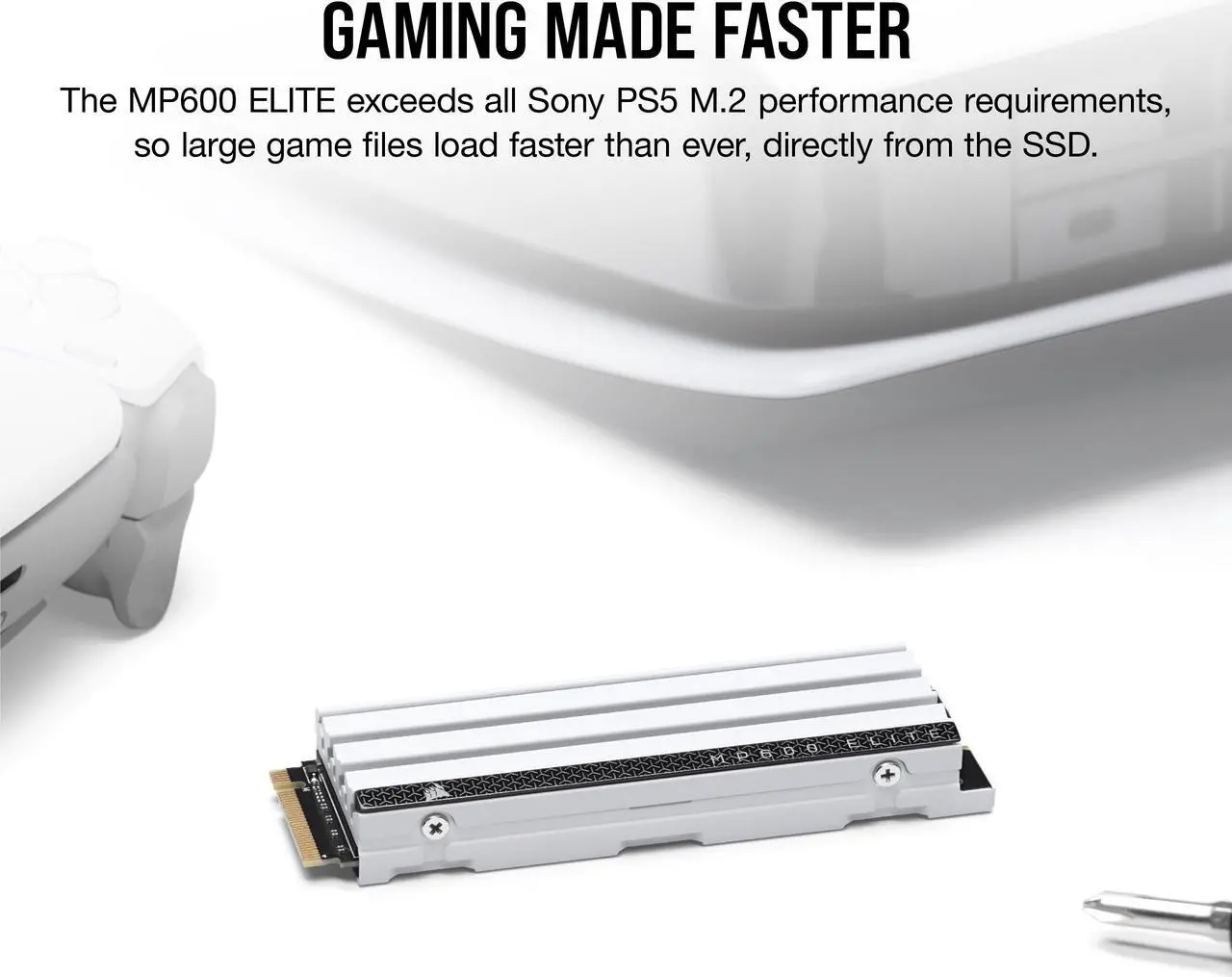 El Corsair MP600 Elite 2TB PCIe Gen4 x4 NVMe 1.4 M.2 2280 ofrece velocidades de lectura de hasta 7000 MB/s y escritura de hasta 6500 MB/s, cumpliendo con los requisitos de rendimiento para PS5 y PCs de gama alta. Su memoria 3D TLC NAND proporciona un rendimiento fiable para juegos, edición de contenido y cargas de trabajo intensivas.