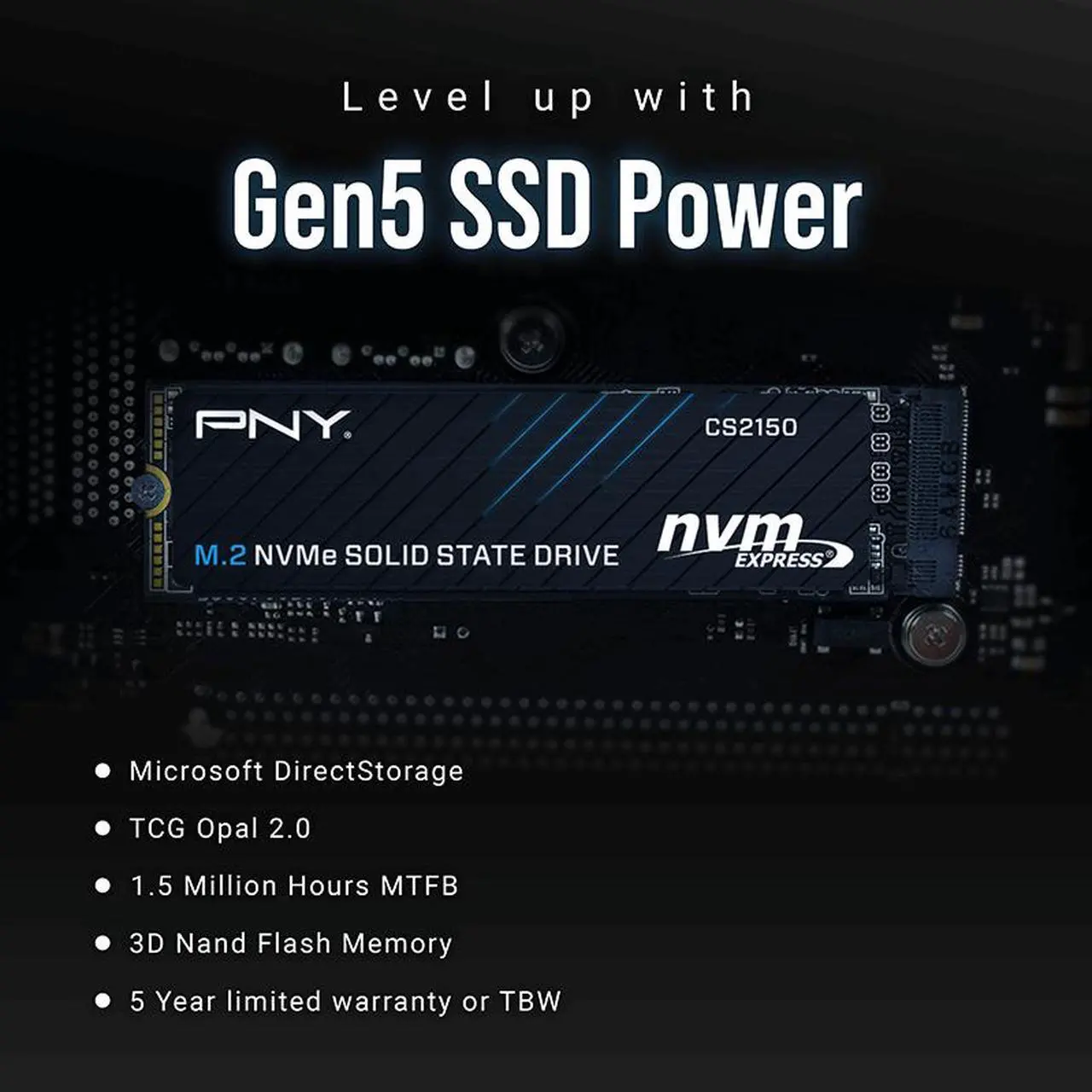 El PNY CS2150 1TB PCIe Gen5 x4 NVMe M.2 2280 ofrece un rendimiento de alta gama con velocidades de lectura de hasta 10300 MB/s, ideal para gaming exigente, creación de contenido y aplicaciones profesionales. Gracias a su arquitectura optimizada y memoria NAND de alto rendimiento, garantiza tiempos de carga muy reducidos y una experiencia de uso fluida incluso bajo cargas intensivas.