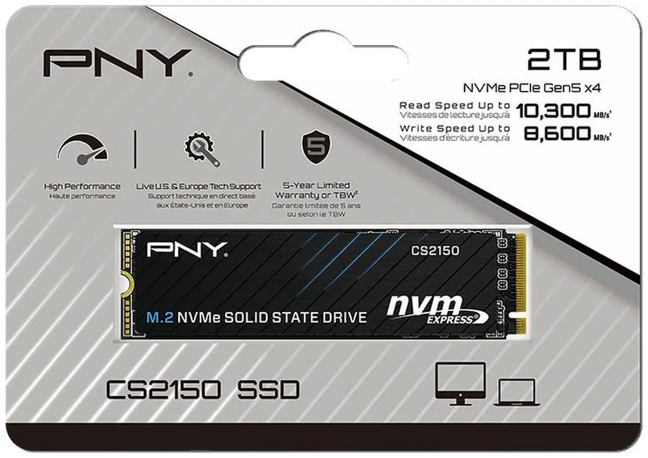 El PNY CS2150 2TB PCIe 5.0 x4 NVMe M.2 2280 alcanza velocidades de lectura de hasta 10300 MB/s y escritura de hasta 8600 MB/s, orientado a usuarios que requieren el máximo rendimiento. Su memoria 3D TLC de alta calidad y la gestión avanzada de caché permiten una experiencia fluida en juegos, edición de vídeo 4K y flujos de trabajo intensivos.