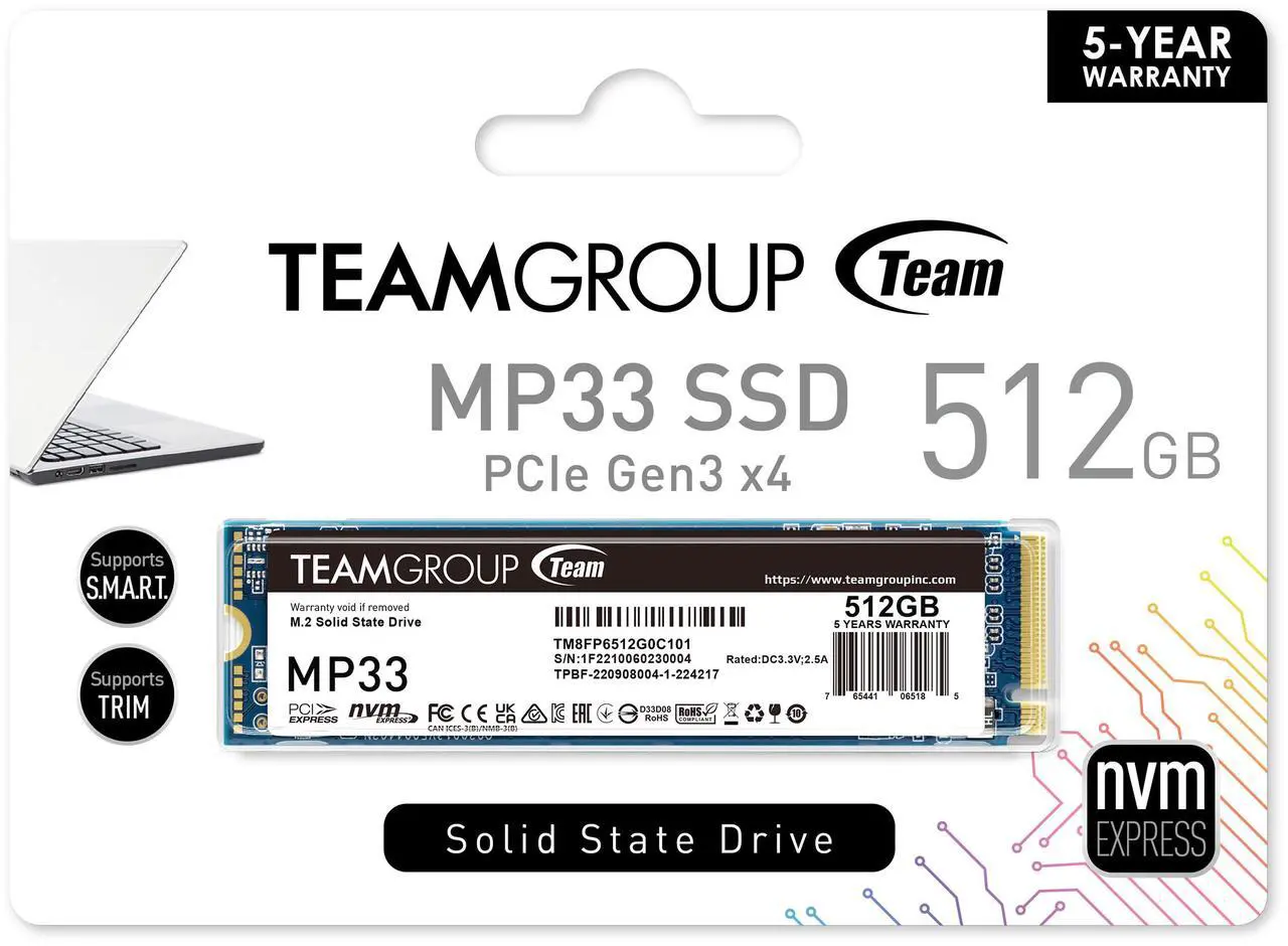 Disco Duro Solido SSD Team Group MP33 512GB PCIe Gen3 x4 M.2 2280 hasta 1700 MB/s