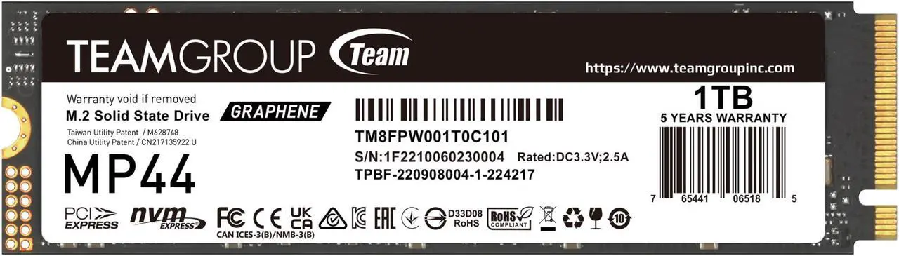 Disco Duro Solido SSD Team Group MP44 1 TB PCIe M.2 2280 hasta 7400 MB/s