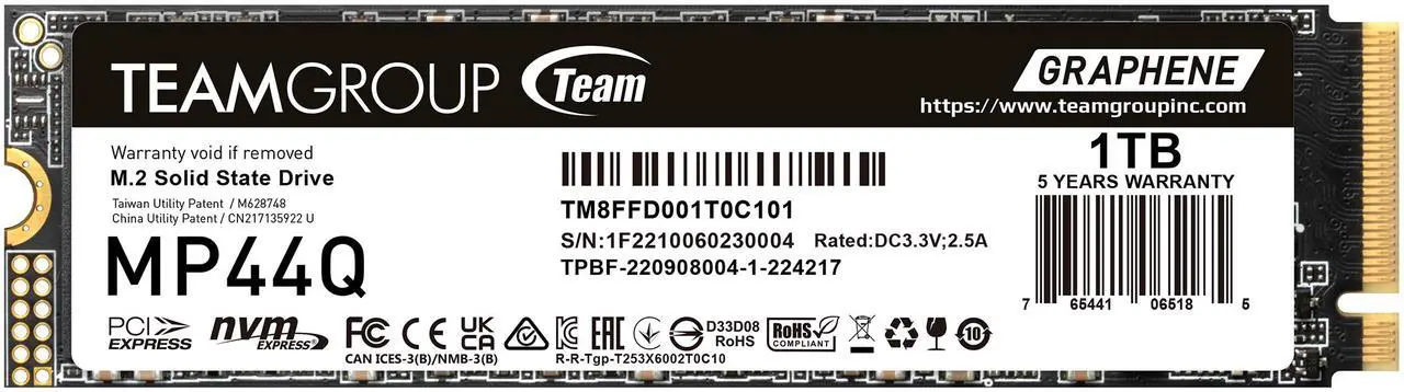 Disco Duro Solido SSD Team Group MP44Q 1TB PCIe M.2 2280 hasta 7400 MB/s