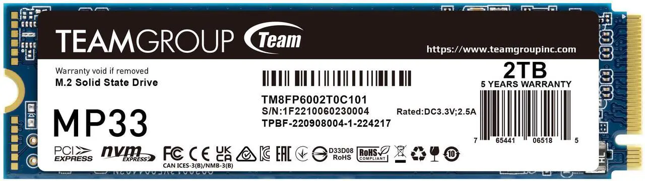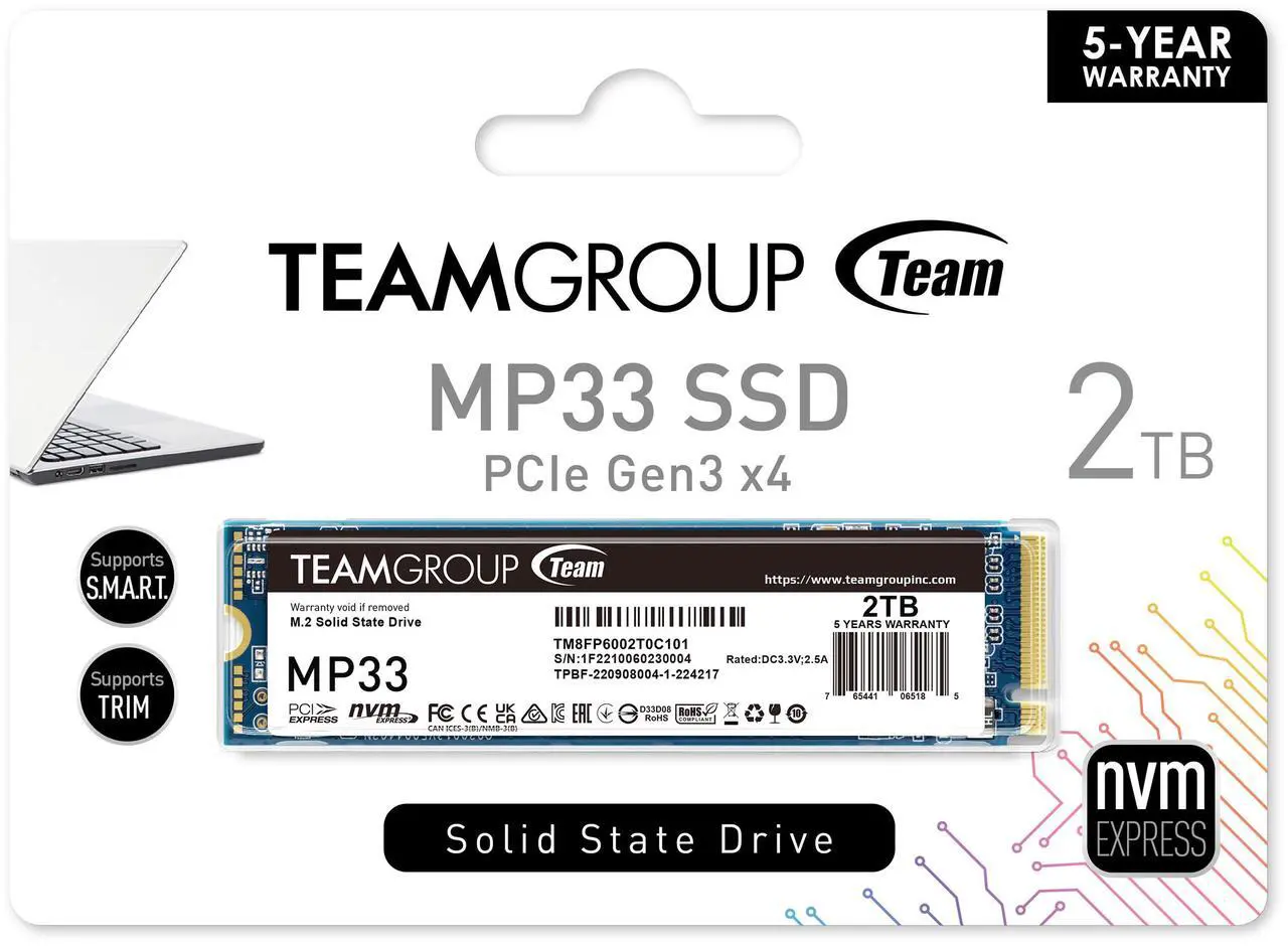 Disco Duro Solido SSD TeamGroup MP33 2 TB PCI-Express Gen 3.0 x4 M.2 2280 hasta 1800 MB/s