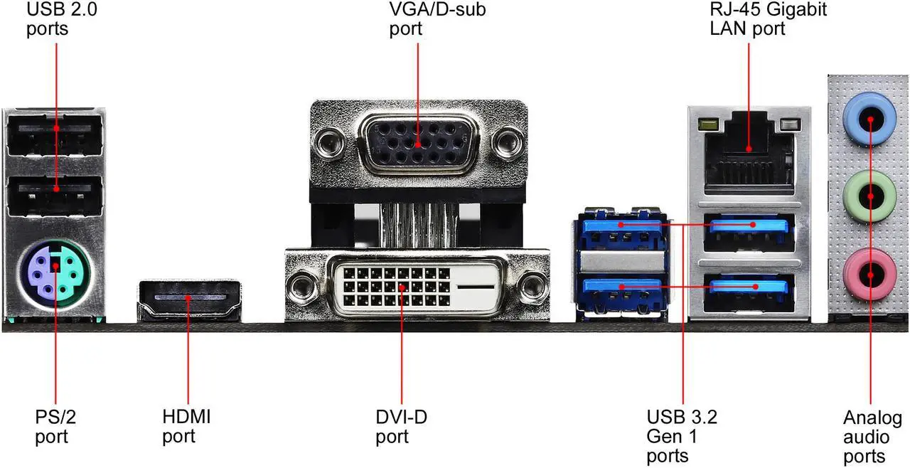 Con 2 ranuras DDR4 (hasta 64 GB, Dual Channel), esta placa ofrece almacenamiento flexible con 4 SATA 6 Gb/s y 1 Hyper M.2 PCIe 4.0 x4 / SATA para SSD NVMe de alta velocidad. En expansión dispone de 1 PCIe 4.0 x16 para la GPU y 1 PCIe 3.0 x1 para tarjetas adicionales, además de salidas de video HDMI/DVI/VGA para APUs Ryzen.