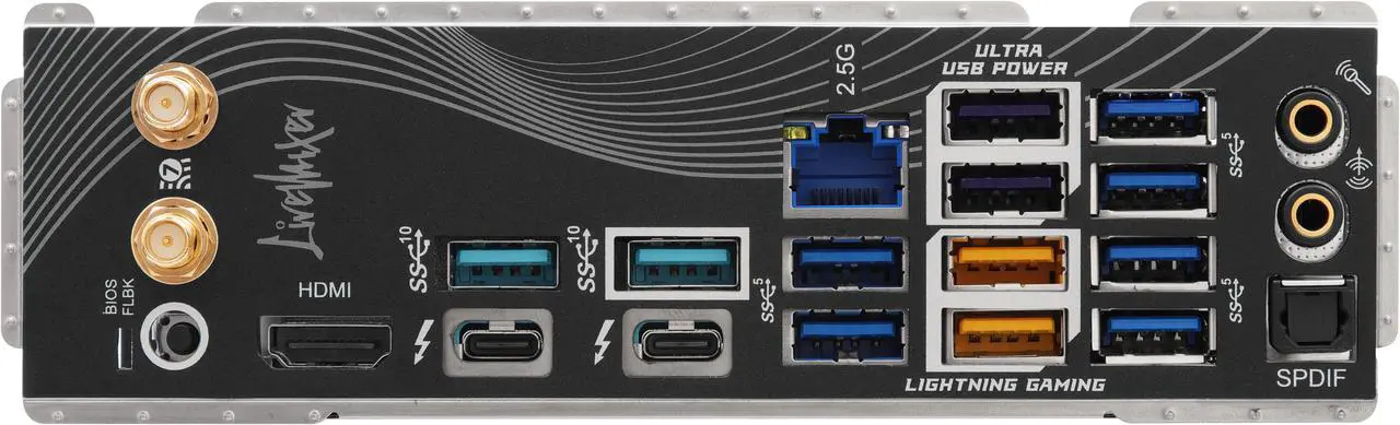 Dispone de 4 ranuras DDR5 (hasta 256 GB, Dual Channel) y un subsistema de almacenamiento con 1 M.2 PCIe 5.0 x4 más 3 M.2 PCIe 4.0 x4, además de 6 puertos SATA 6Gb/s con RAID 0/1/5/10. La expansión para GPU se centra en un slot PCIe 5.0 x16 reforzado, acompañado de puertos USB de alta velocidad y salidas de video para iGPU, simplificando la conexión de periféricos y monitores.