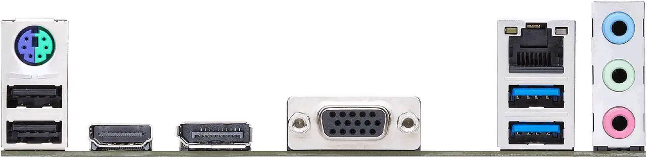 Equipa 2 ranuras DDR4 en Dual Channel (hasta 64 GB), 4× SATA 6 Gb/s y 1× M.2 NVMe para SSD de alta velocidad. A nivel de expansión incluye además un V‑M.2 Key E para módulos Wi‑Fi/Bluetooth (no incluidos). En video —con CPUs con iGPU— ofrece DisplayPort, HDMI y D‑Sub, facilitando configuraciones multi‑monitor en setups compactos.