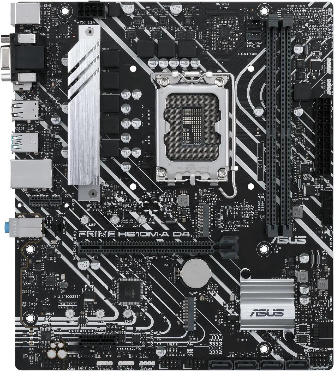 La ASUS PRIME H610M‑A D4‑CSM se basa en el chipset Intel H610 con socket LGA 1700, compatible con Intel Core 12ᵃ/13ᵃ/14ᵃ generación. La ranura principal PCIe 4.0 x16 admite GPUs y tarjetas modernas, mientras su VRM eficiente y disipación en zonas críticas ofrecen estabilidad 24/7. El programa ASUS CSM agrega herramientas de administración y un ciclo de vida extendido para entornos corporativos y de TI.