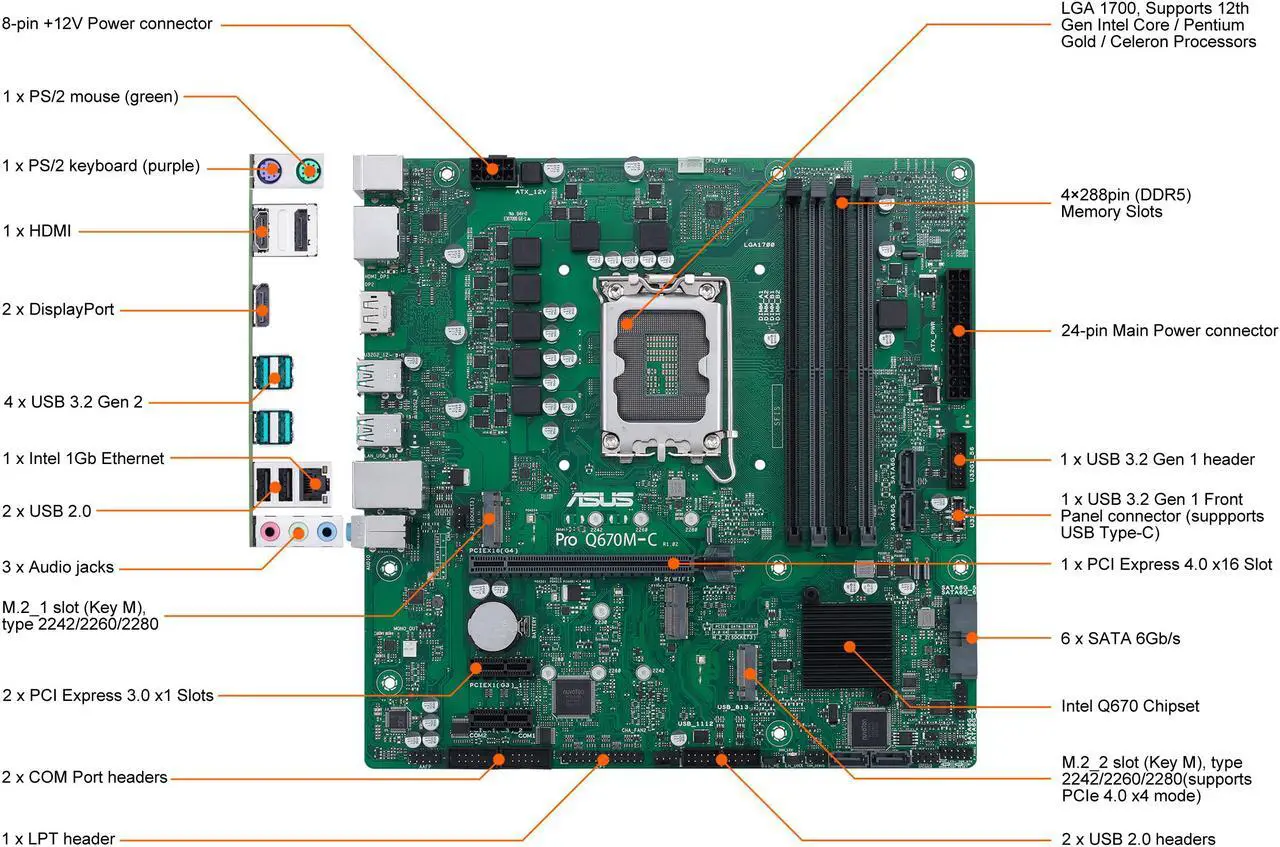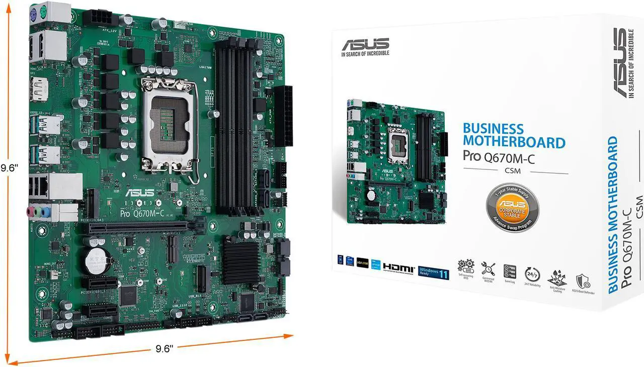 Motherboard ASUS Pro Q670M-C-CSM Socket LGA1700 Micro ATX — Seguridad empresarial, 2x M.2 y 4x USB 3.2 Gen2