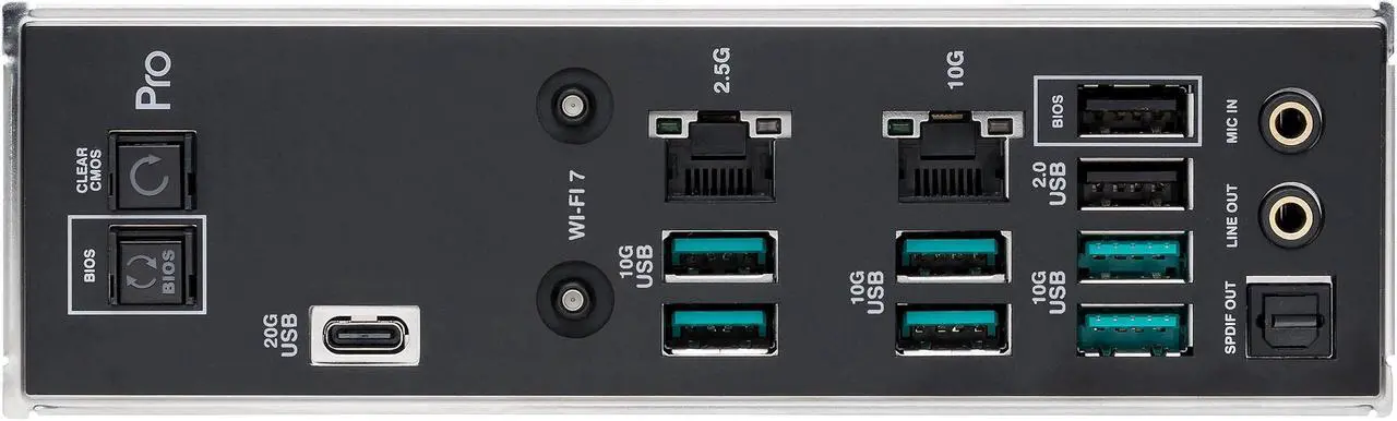 3× M.2 (2× Gen5 + 1× Gen4), 4× SATA 6 Gb/s, SlimSAS, PCIe: 2× Gen5 x16 + 1× Gen5 x16 (x8) + 1× Gen4 x16 + 1× Gen4 x16 (x4); USB‑C 20Gbps.