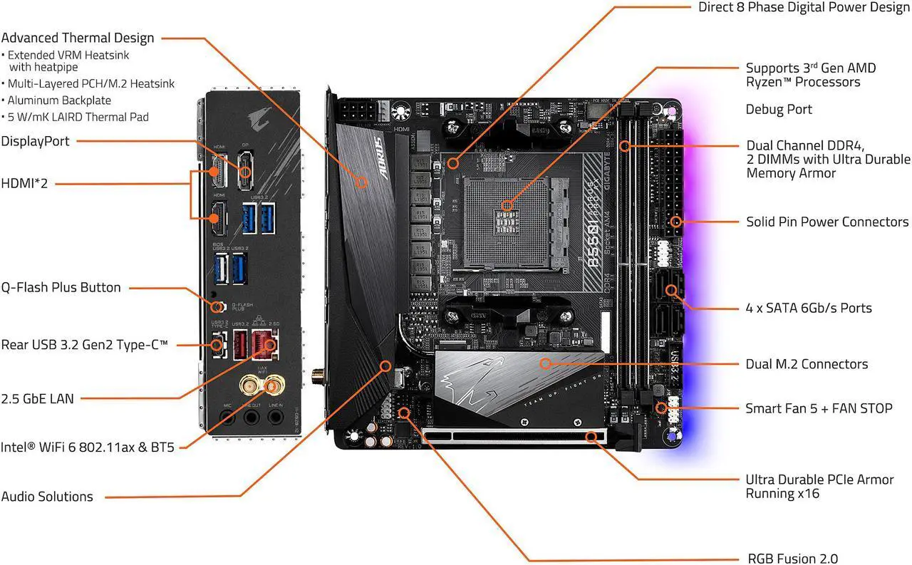 Motherboard GIGABYTE B550I AORUS PRO AX — potencia SFF con PCIe 4.0