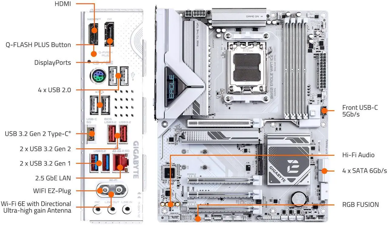 Motherboard GIGABYTE B850 EAGLE WIFI7 ICE Socket AM5 ATX — USB‑C, 2.5GbE y EZ‑Latch
