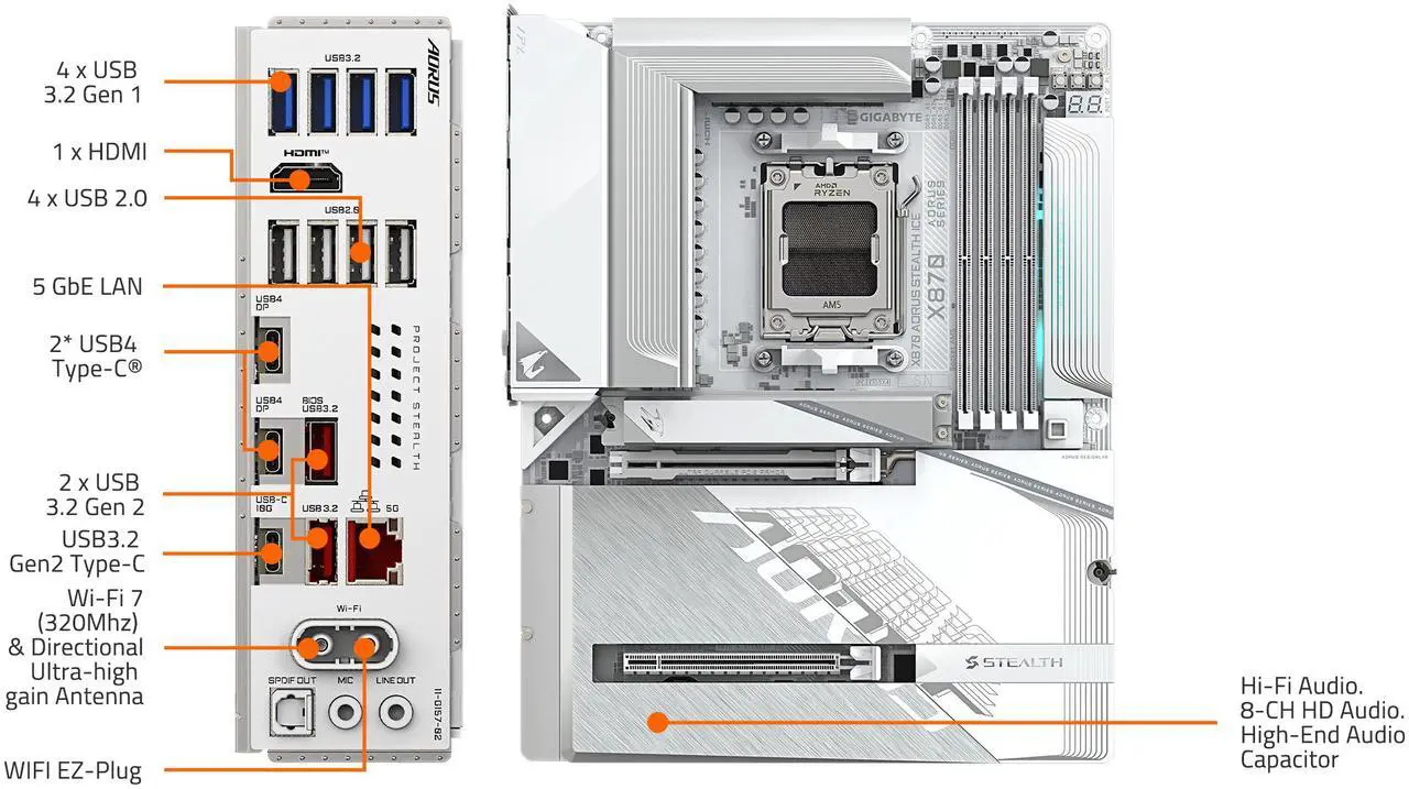 Motherboard GIGABYTE X870 AORUS STEALTH ICE — Wi‑Fi 7 y LAN 5GbE