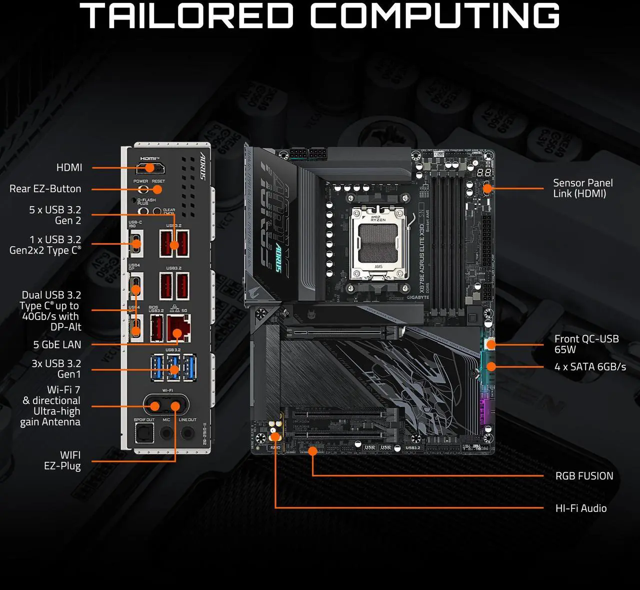 AORUS ELITE X3D: USB4 y cuádruple M.2