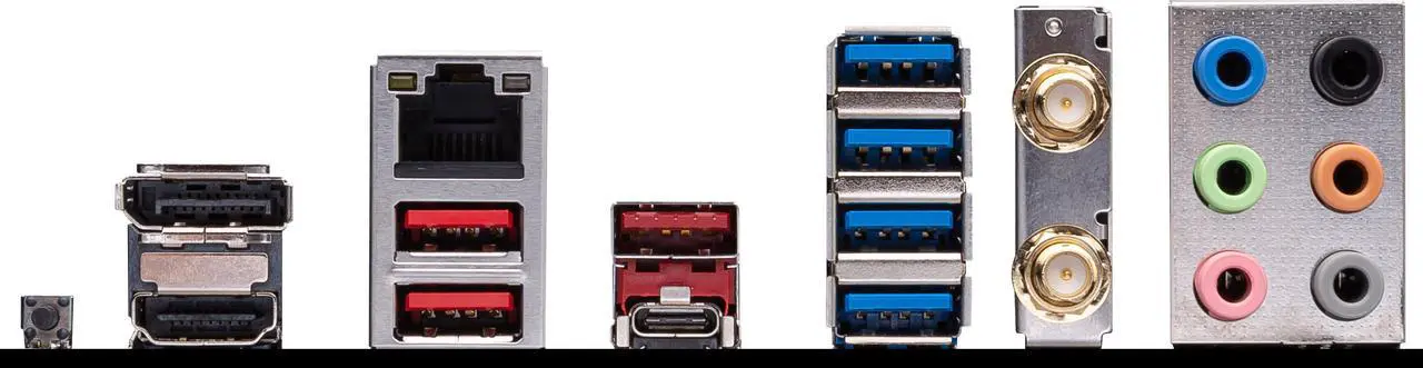 La conectividad combina **LAN 2.5 Gbps (Realtek RTL8125BG)**, **Wi-Fi 6E 802.11ax** y **Bluetooth 5.3** para redes rápidas y estables. El audio 7.1 usa **codec Realtek ALC897** con mejora **Audio Boost** y compatibilidad con Nahimic. Incluye USB 3.2 Gen 2×2 Type-C trasero, Q-Flash BIOS, y formato **ATX (30.5 × 24.4 cm)** para fácil integración en gabinetes estándares.