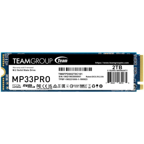 Disco Duro Solido SSD Team Group MP33 PRO 2TB PCIe M.2 2280 hasta 3500 MB/s