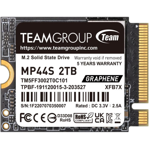 Disco Duro Solido SSD Team Group MP44S 2TB PCIe Gen4 x4 M.2 2230 hasta 5000 MB/s